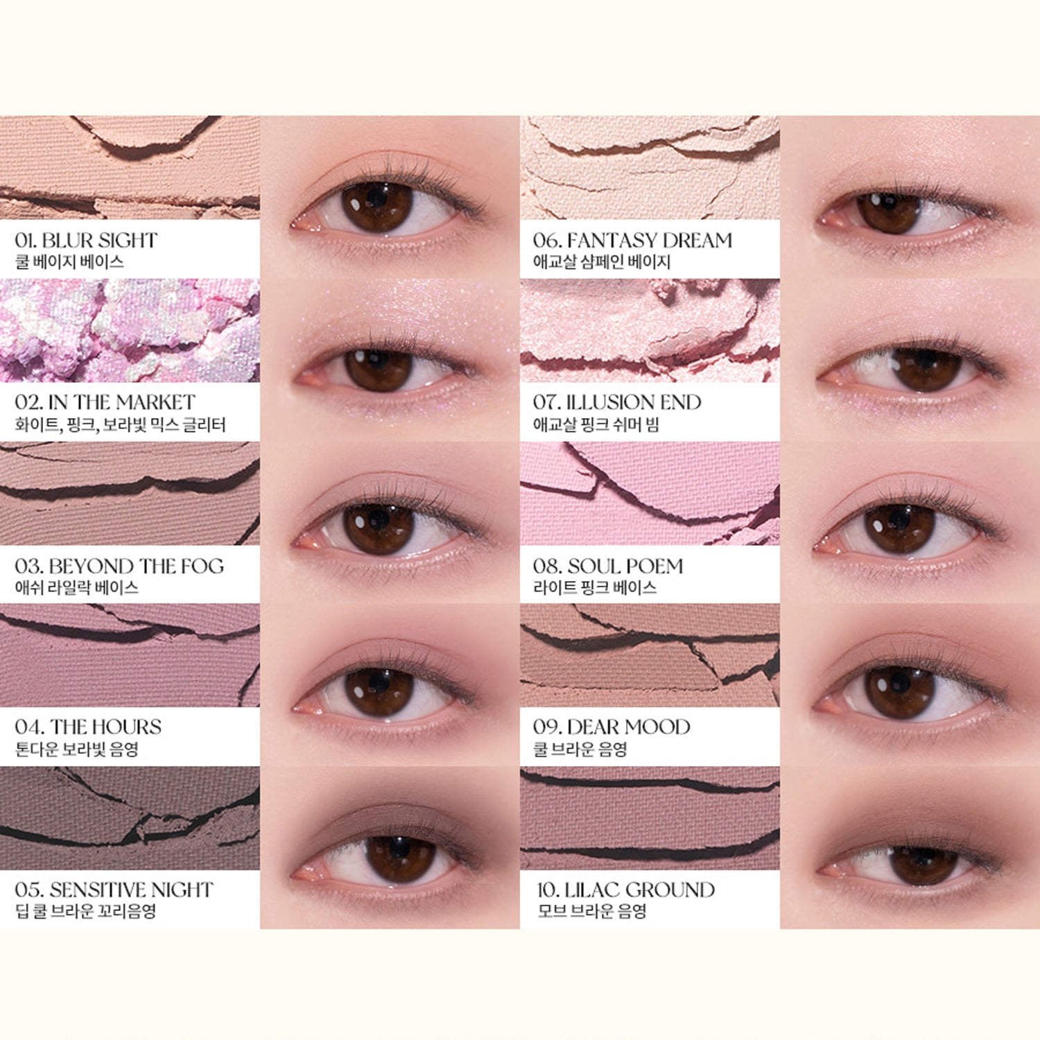 The Rom&nd Better Than Palette Energetic Series are eyeshadow palettes that consists of 10 gorgeous matte and glitter shades to create a variety of looks. Rom&nd's Secret Garden eyeshadow palettes provide contrasting dark and light shades for improved layered looks. The palettes are extremely versatile and feature a wide spectrum of colors to suit different skin tones. It uses refined particles with silky textures for an even colour payoff and smooth application. Super-fine glitter particles apply smoothly onto the eyelids without fallout. The shadows use a pressed formula that delivers vivid pigmentation, a smooth and natural-looking finish and long-lasting adherence. Oil-blotting ingredients absorb excess sebum and prolong makeup wear.
