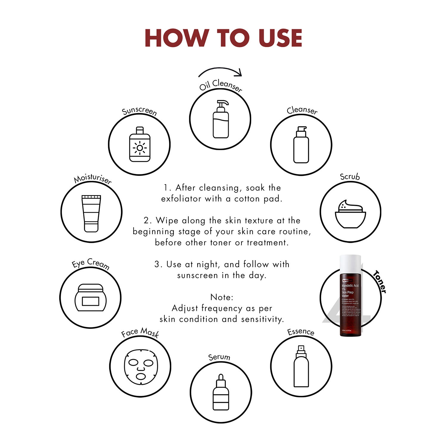 Note: Adjust frequency as per skin condition and sensitivity.
