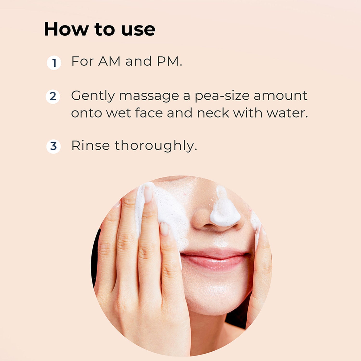 This gentle foam cleanser is suitable for daily use, as its bubble-like texture turns into a soft lather that leaves your face looking clear and bright, and keeps your skin barrier intact.