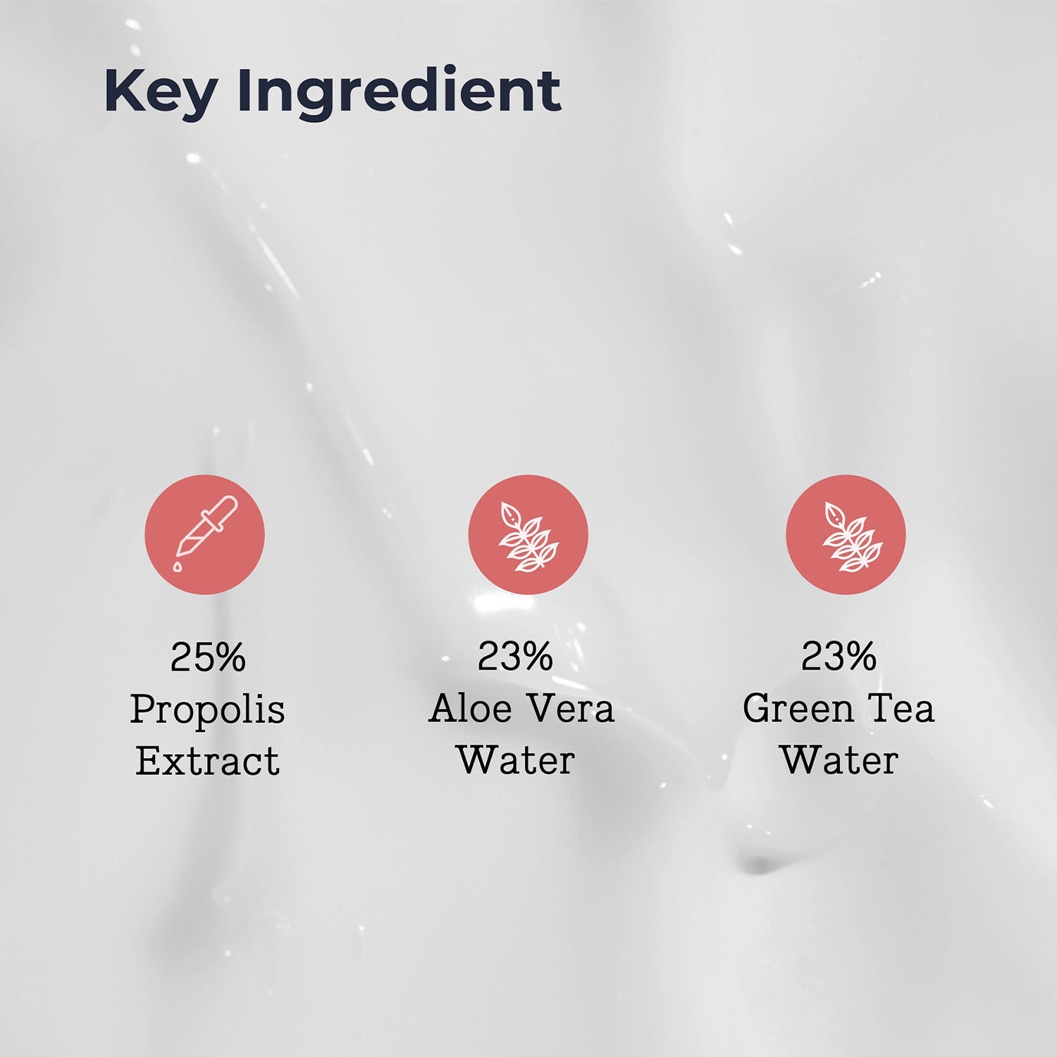 - Propolis, Niacinamide and Aloe reduce irritation for sensitive skin