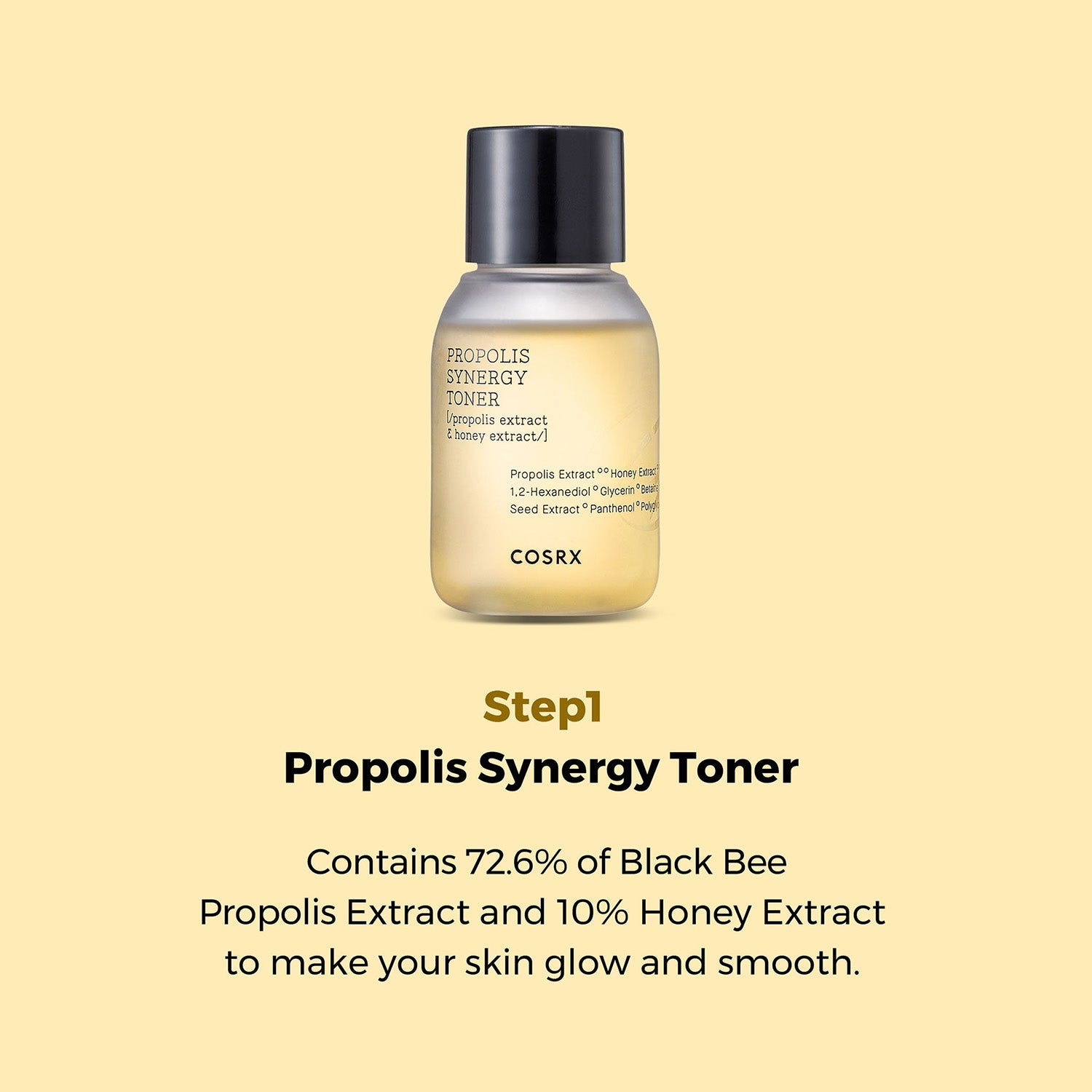 A daily toner with 72.6% Black Bee Propolis Extract and 10% Honey Extract to brighten and nourish dull skin adding a radiant glow.
