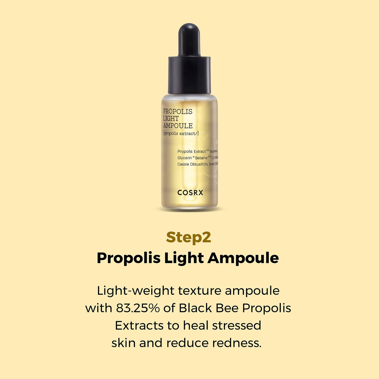 A rich Propolis ampoule, with honey-like texture that deeply hydrates, moisturises and brightens your skin for a radiant glow.