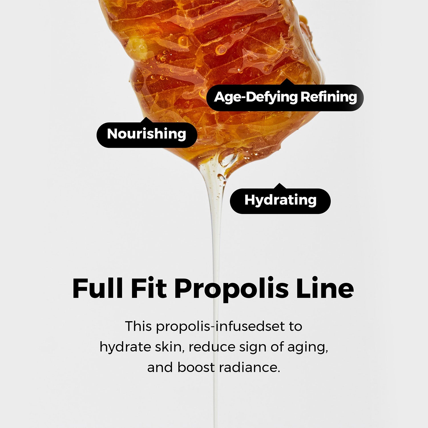 Propolis Extract, Honey Extract, Butylene Glycol, 1,2-Hexanediol, Glycerin, Betaine, Cassia Obtusifolia Seed Extract, Panthenol, Polyglyceryl-10 Laurate, Polyglyceryl-10 Myristate, Ethylhexylglycerin, Sodium Hyaluronate, Hydroxyethyl Acrylate/Sodium Acryloyldimethyl Taurate Copolymer, Caprylic/Capric Triglyceride