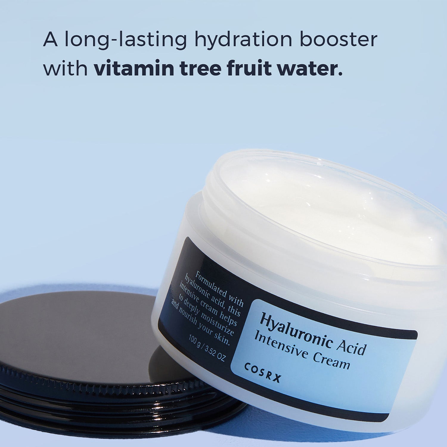 The Cosrx Hyaluronic Acid Intensive Cream is an intensely hydrating cream that boosts moisture and seals it in to prevent dehydration. It softens and conditions dry skin without feeling oily or heavy.