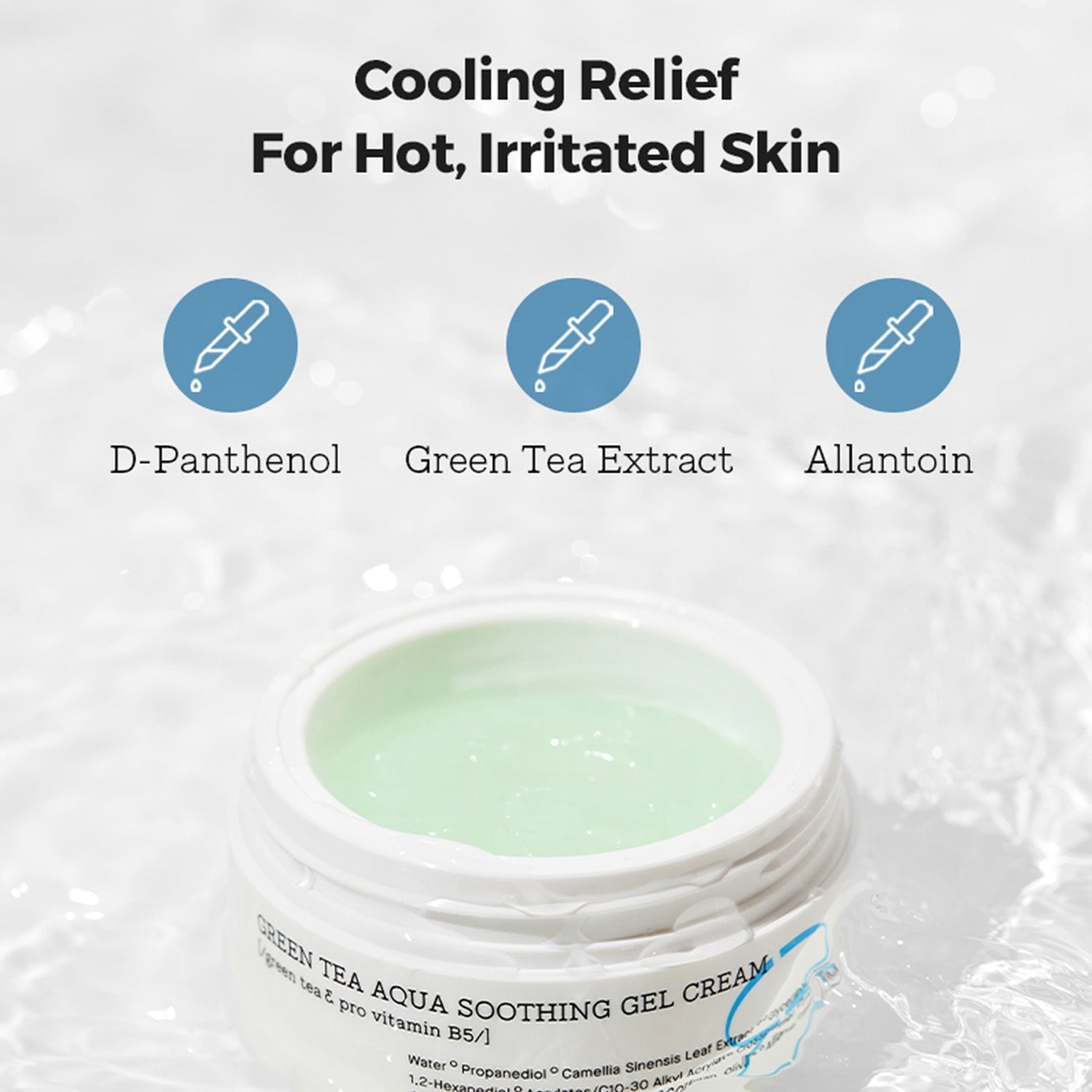 The Cosrx Hydrium Green Tea Aqua Soothing Gel Cream is a non-oily gel cream with Vitamin B5, that adds hydration and provides cooling relief for heated angry skin. It has a light gel texture that moisturises without feeling sticking making it suitable for day and night, and oily-combination skin.