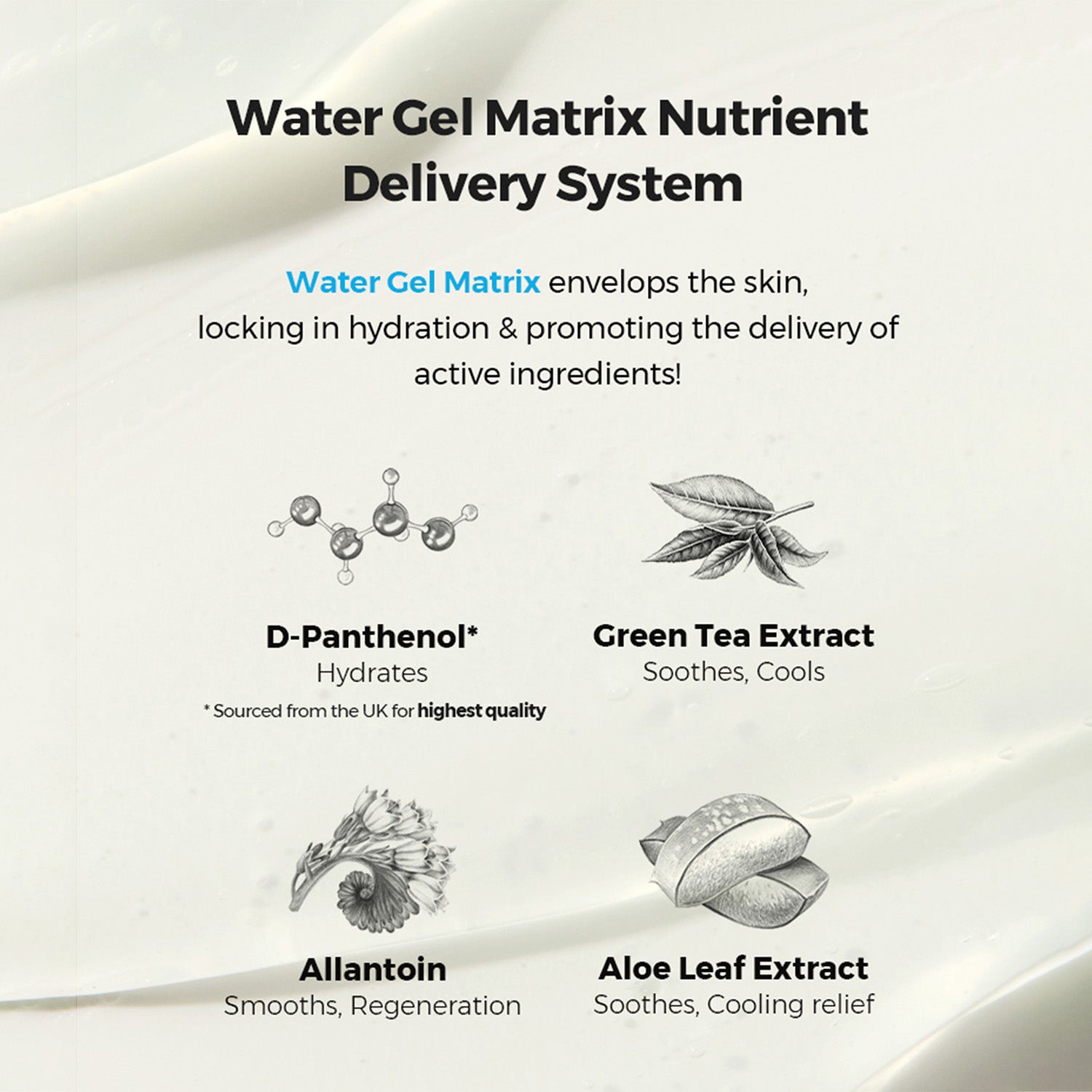 Vitamin B5 or D-Panthenol is a key ingredient in the gel cream and moisturises dry and deydrated skin, while also improving skin repair and regeneration. The cream also contains Green Tea and Allantoin which provide relief and soothe sensitive skin.