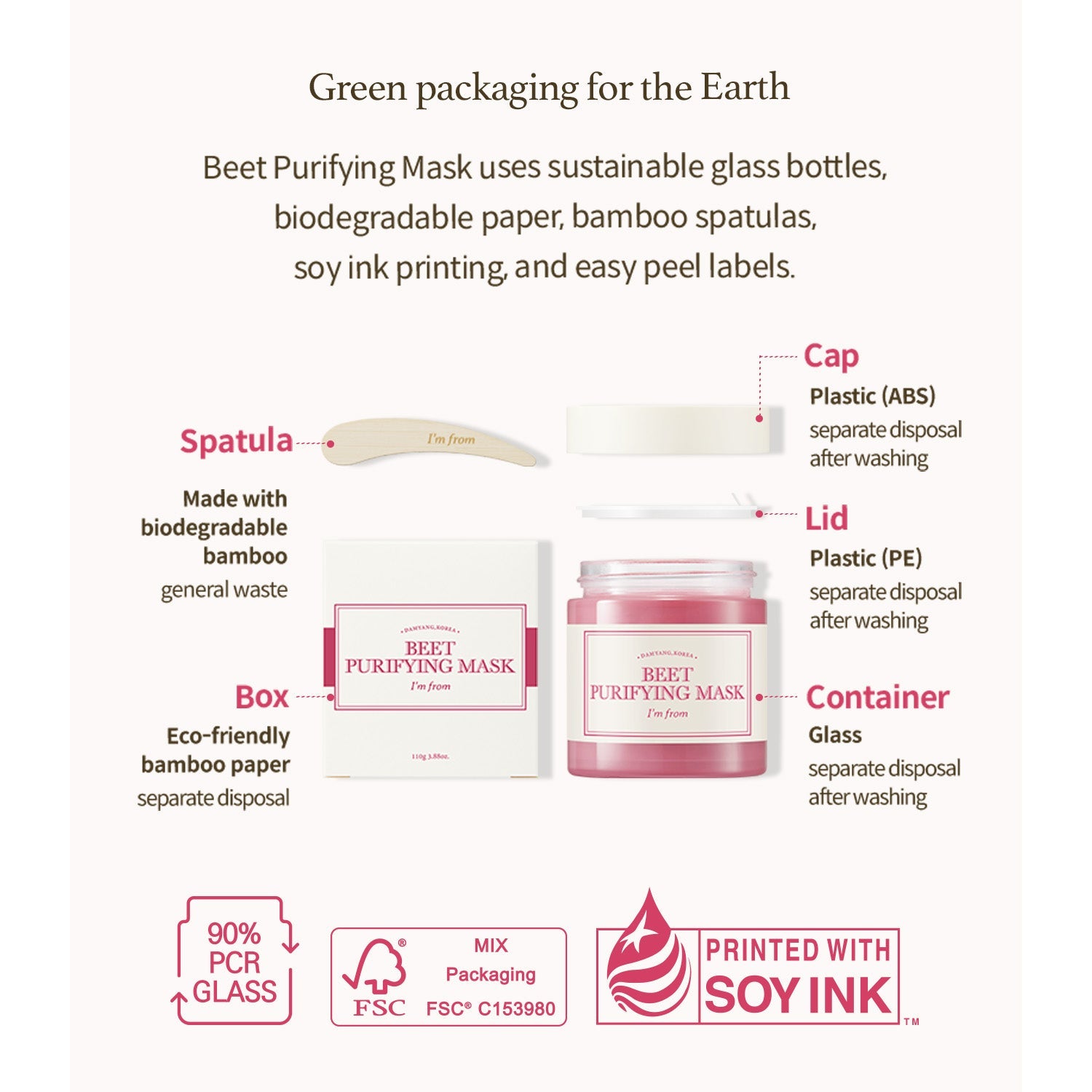 Unveil a clearer, healthier complexion with I'm From Beet Purifying Mask. This innovative clay mask harnesses the power of organic red beet enzyme sourced from Damyang, Korea. It provides deep pore cleansing, removes impurities, and restores your skin's natural radiance. With actual organic beetroot pieces that dissolve with a massaging motion, it is the ideal mess-free, at-home skincare mask.