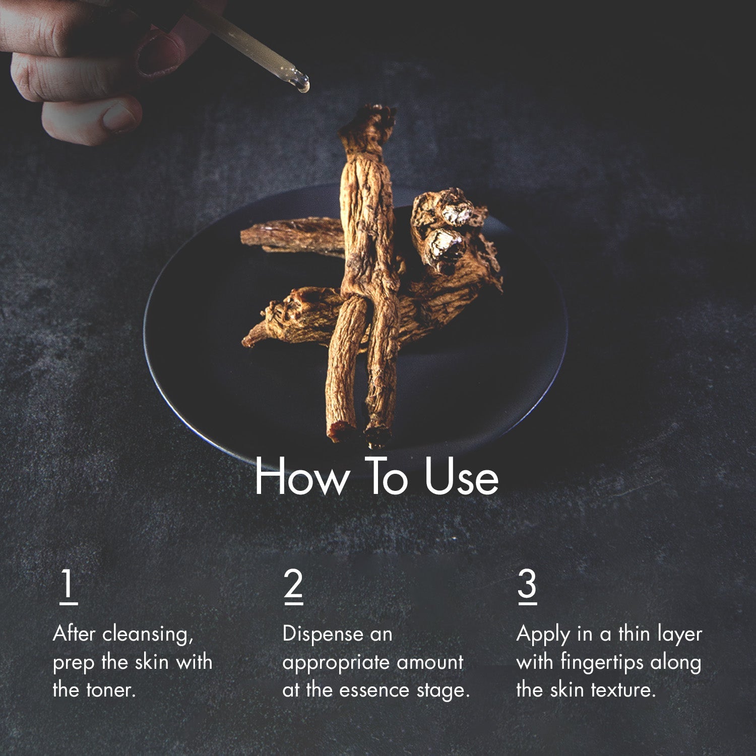 2. Dispense an appropriate amount at the essence stage and apply in a thin layer with fingertips along the skin texture.