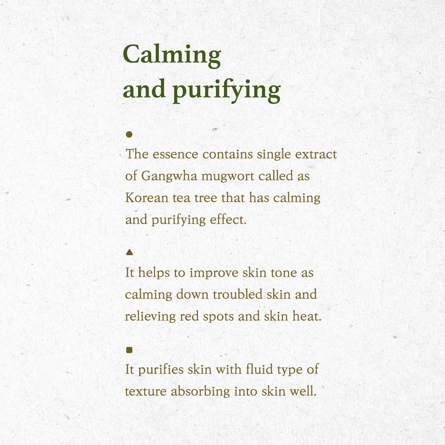 The I'm From Mugwort Essence contains a single extract of 100% natural Mugwort Extract, locally sourced from Ganghwa, Korea. It is also known as Korean "tea tree". The essence's lightweight texture absorbs quickly into the skin, delivering deep hydration and nourishment without leaving a sticky residue