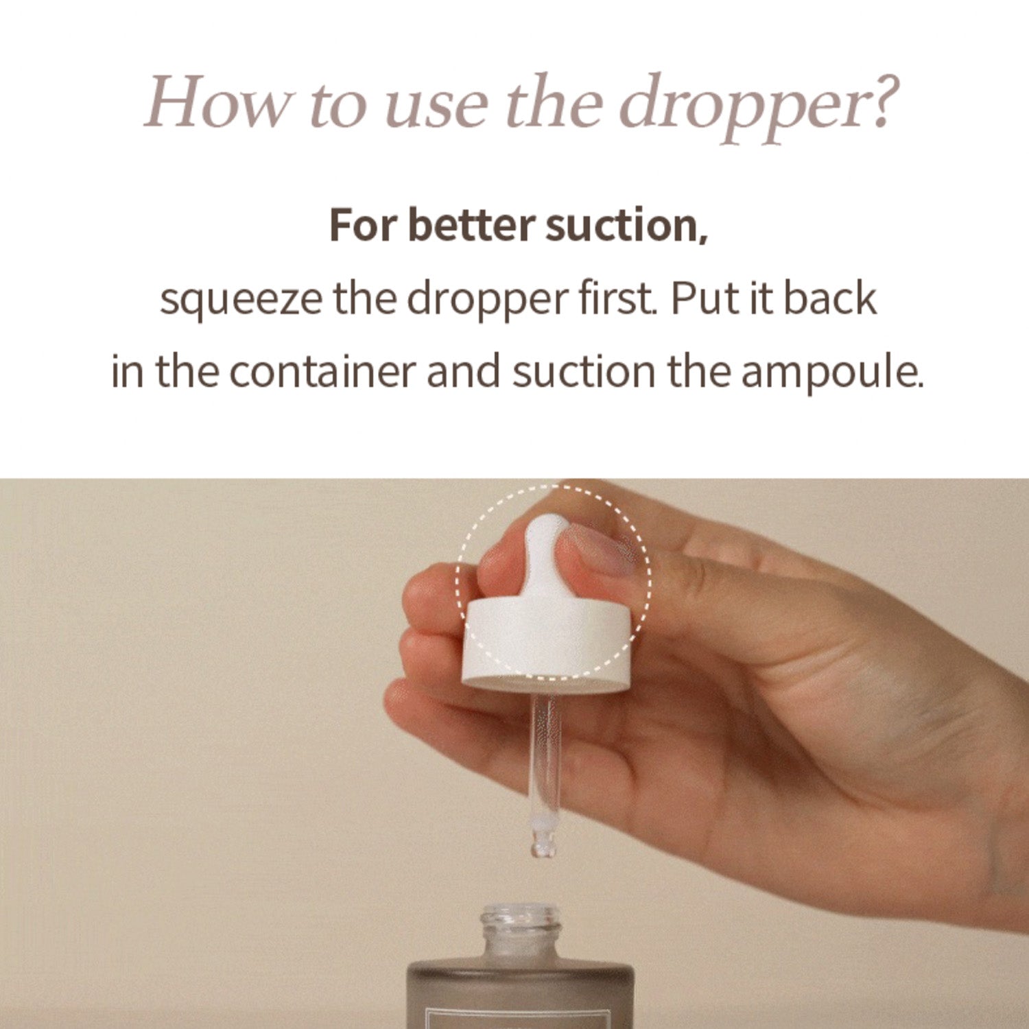 • For better suction, squeeze the dropper outside of the bottle, while squeezing put it back into the bottle and release it so that more product can be sucked by the dropper.