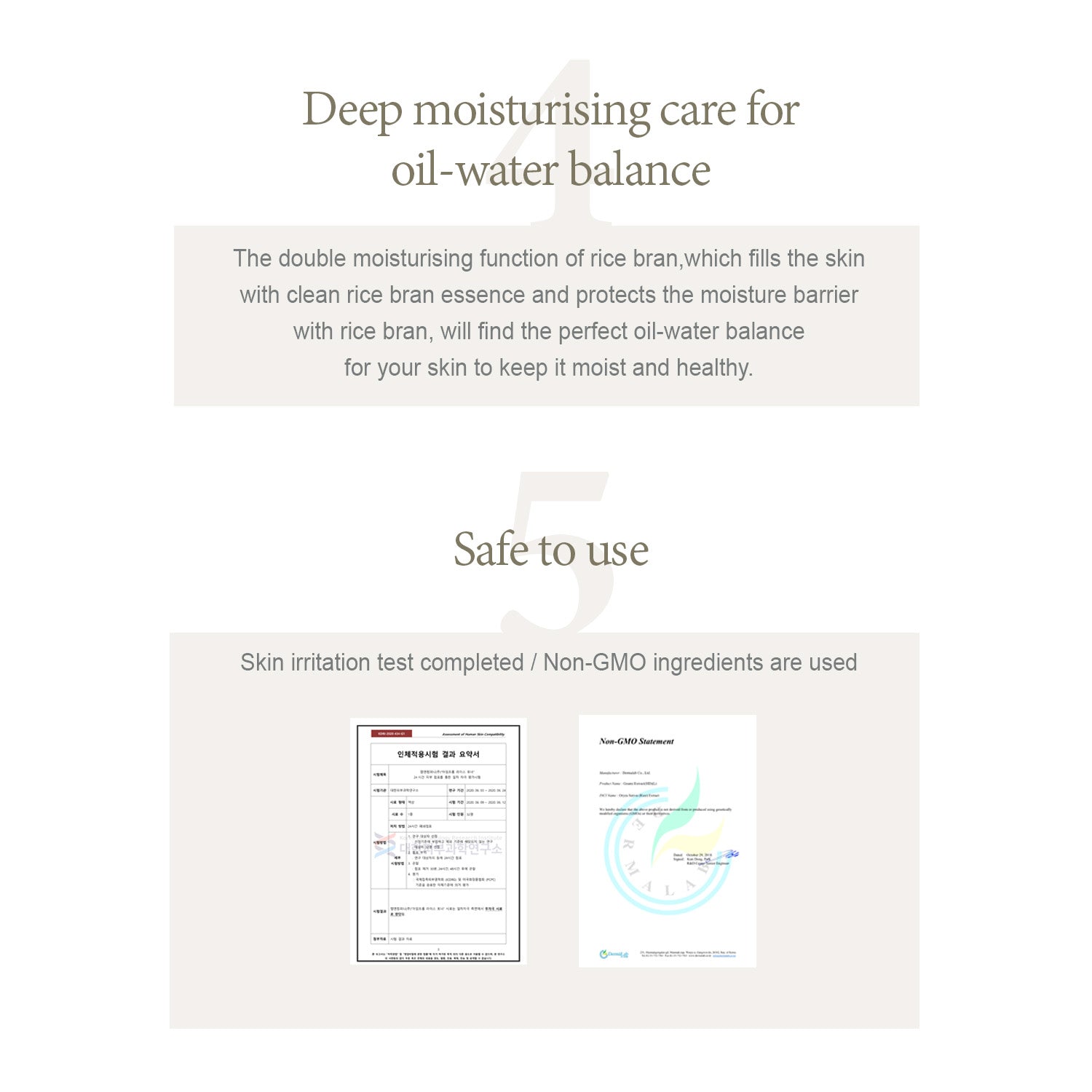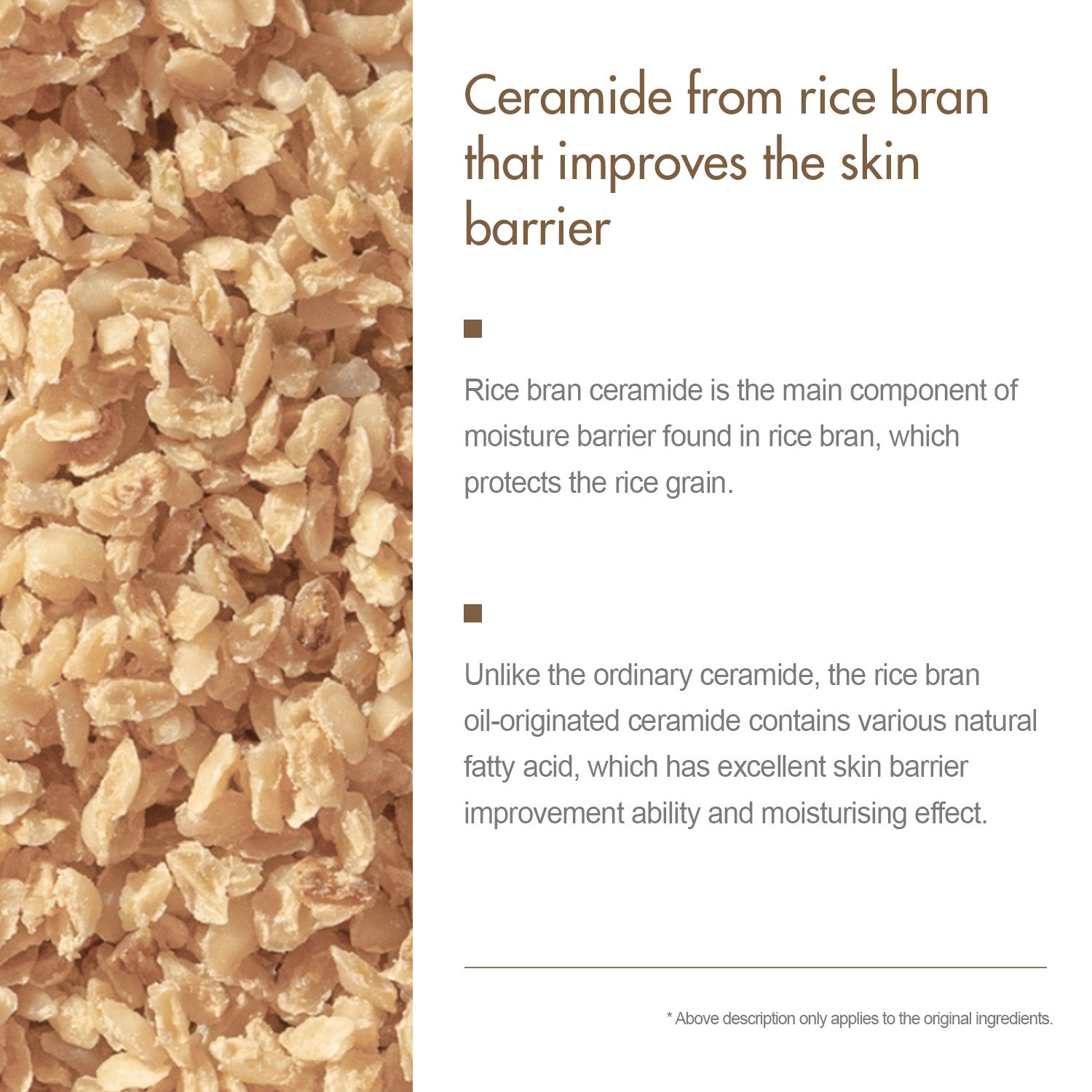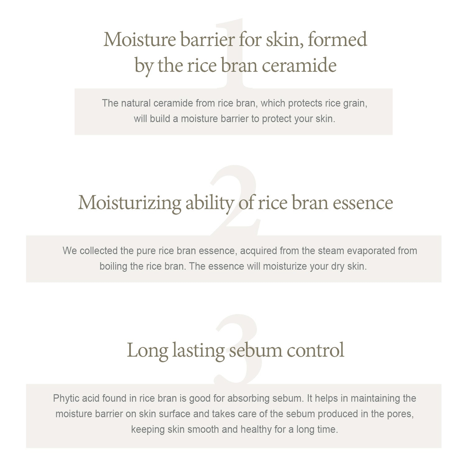 Rice Bran: The cream uses Rice Bran Water and Rice Bran Oil. Rice bran ceramide is the main component of moisture barrier found in rice bran, which protects the rice grain.