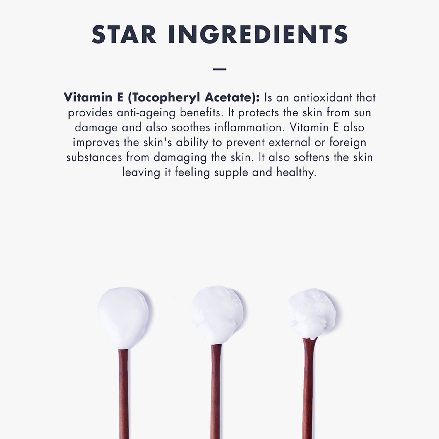 Key ingredients, Vitamin E, Niacinamide and Adenosine are noted for their anti-ageing properties, the ability to brighten the skin and also improve elasticity. Together they improve dull, dehydrated and dry skin.