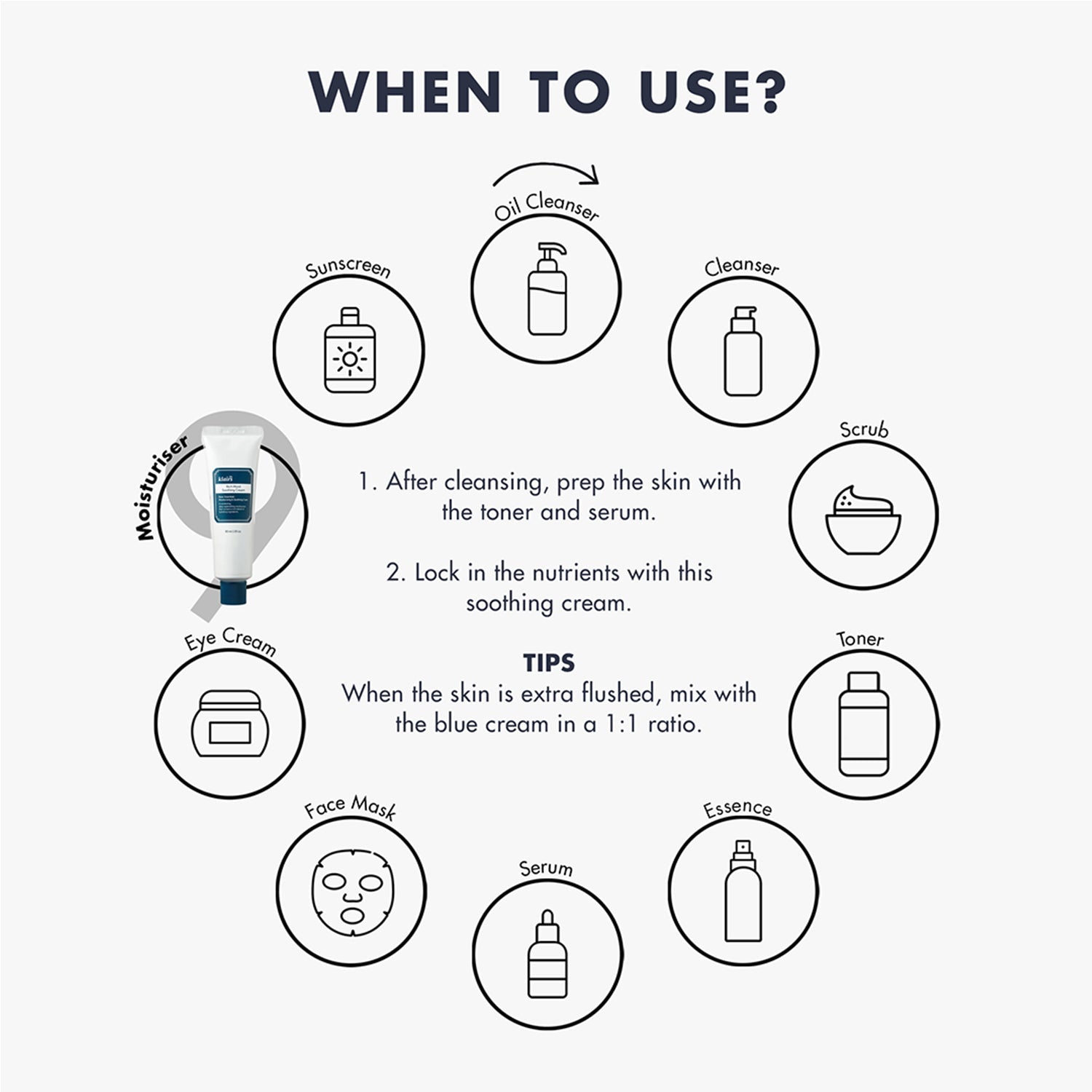 The cream can be used day and night, and it helps soothe irritated or inflamed skin.