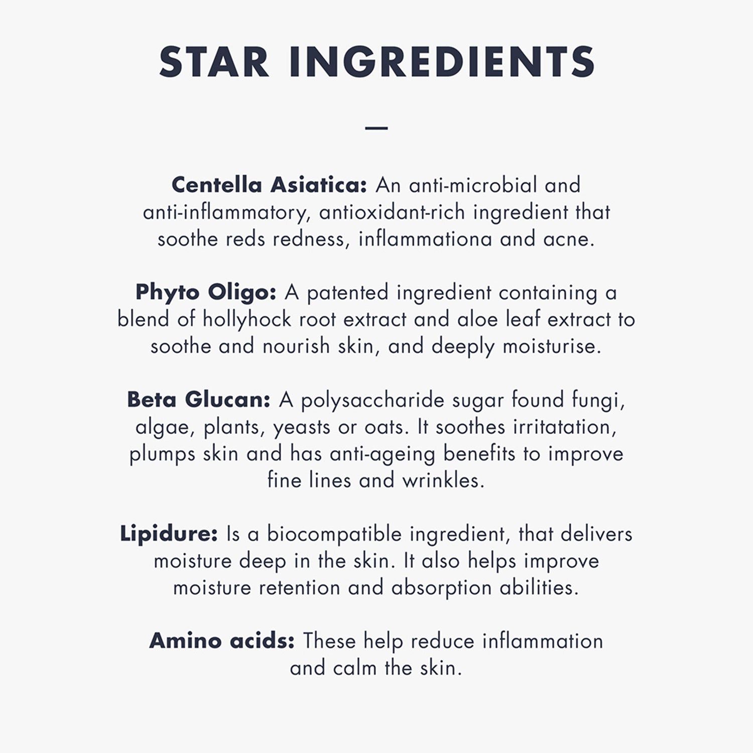 Key ingredients such as Phyto-Oligo and Beta-Glucan keeps skin hydrated and moisturised, thus reducing dryness. It also uses wheat amino acids that help reduce redness and inflammation of the skin. The plant extracts and soothing ingredients, such as Centella Asiatica, are blended together to form a calming, non-irritating formulation. The hydrating toner is also gentle enough to be suited for sensitive skin. Best for & All Skin Types, especially Sensitive Skin