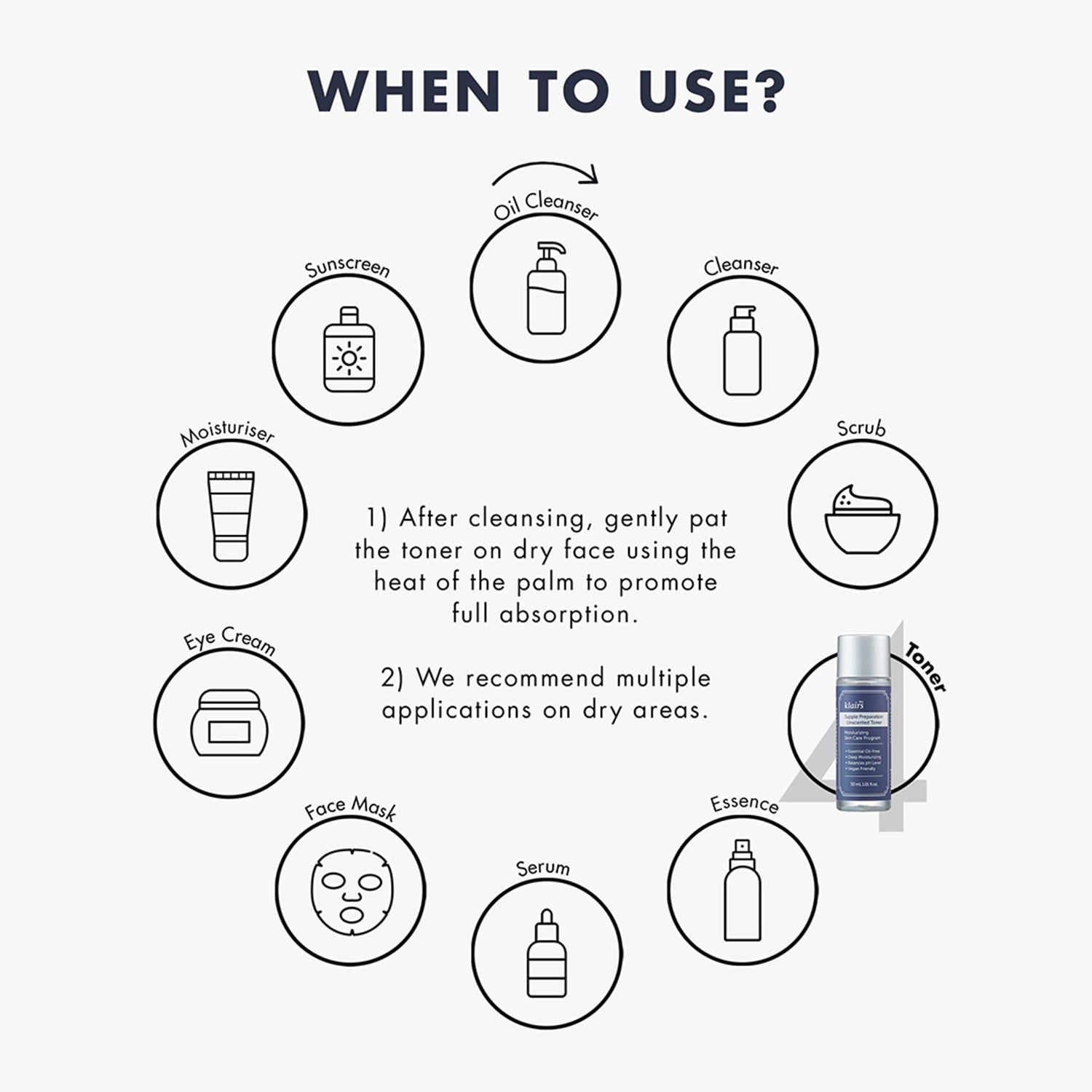 After cleansing, apply the toner to clean skin. Pat with palms for complete absorption.