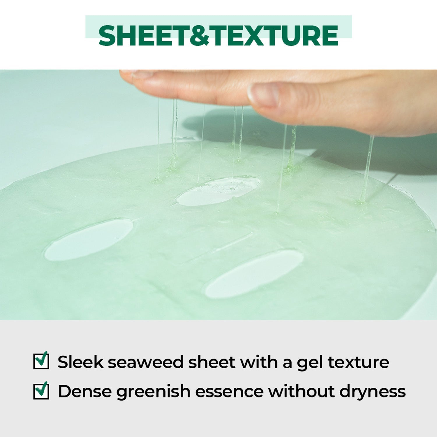Seaweed Cell Sheet: Adheres like a second skin, transforming into a gel texture to enhance essence absorption.