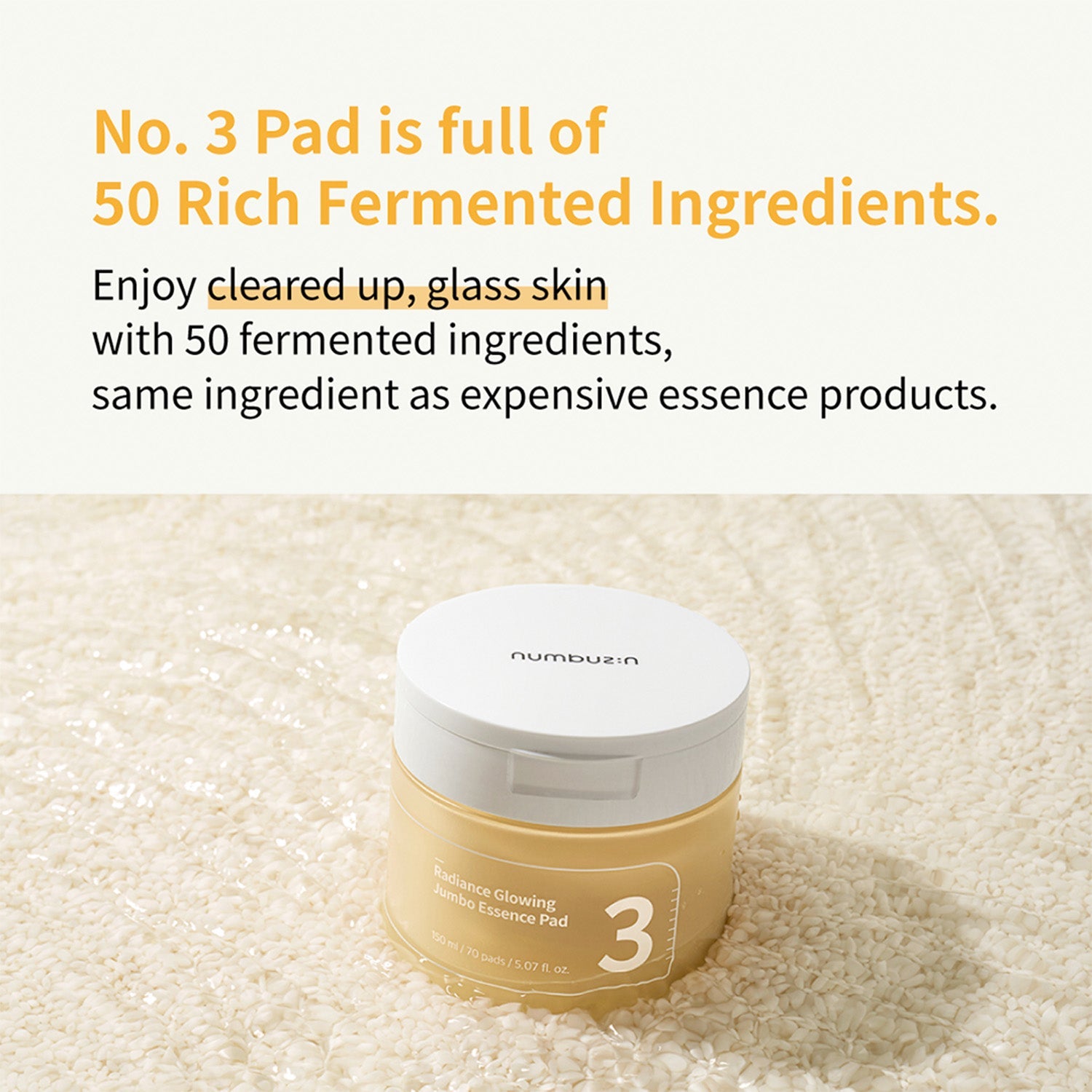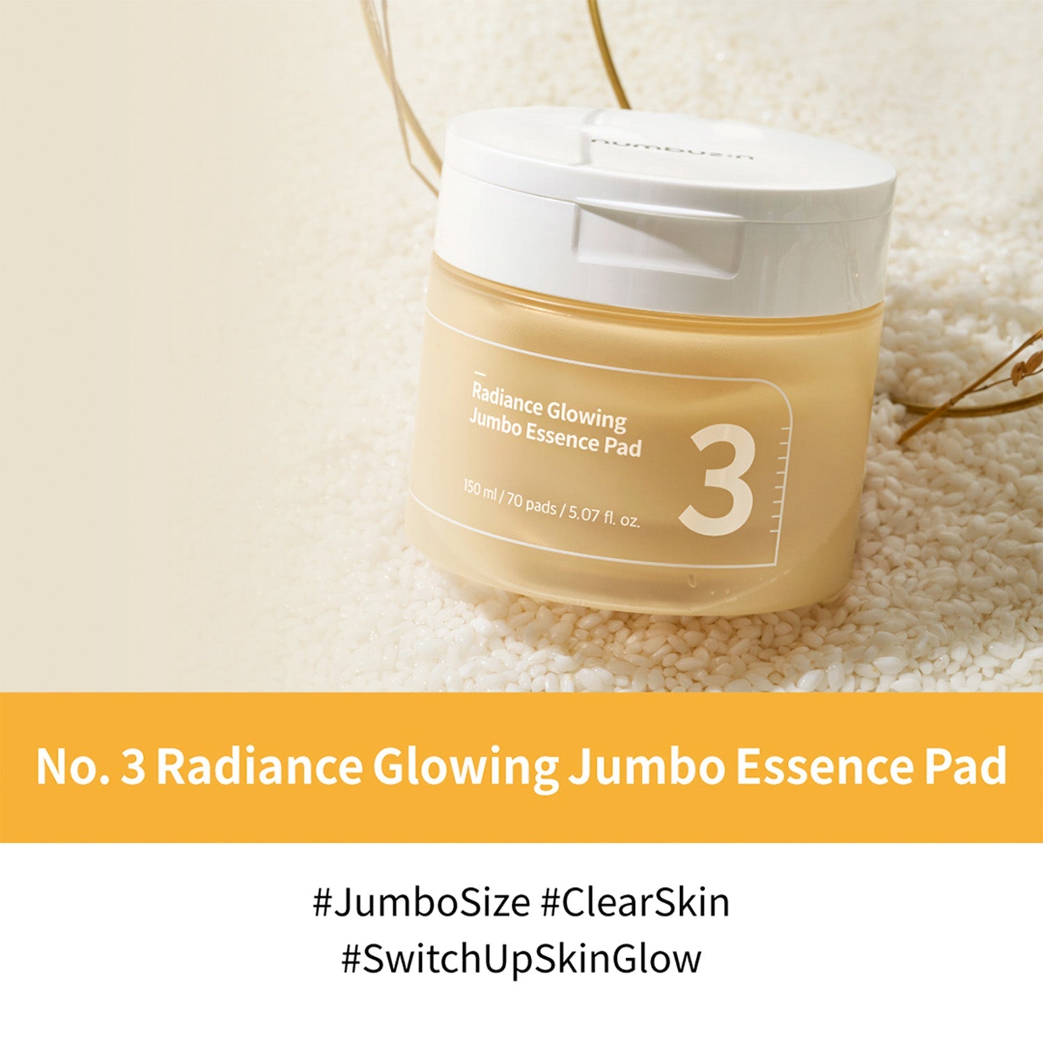 Q3: How should the Numbuzin No.3 Radiance Glowing Jumbo Essence Pads be used in a skincare routine?