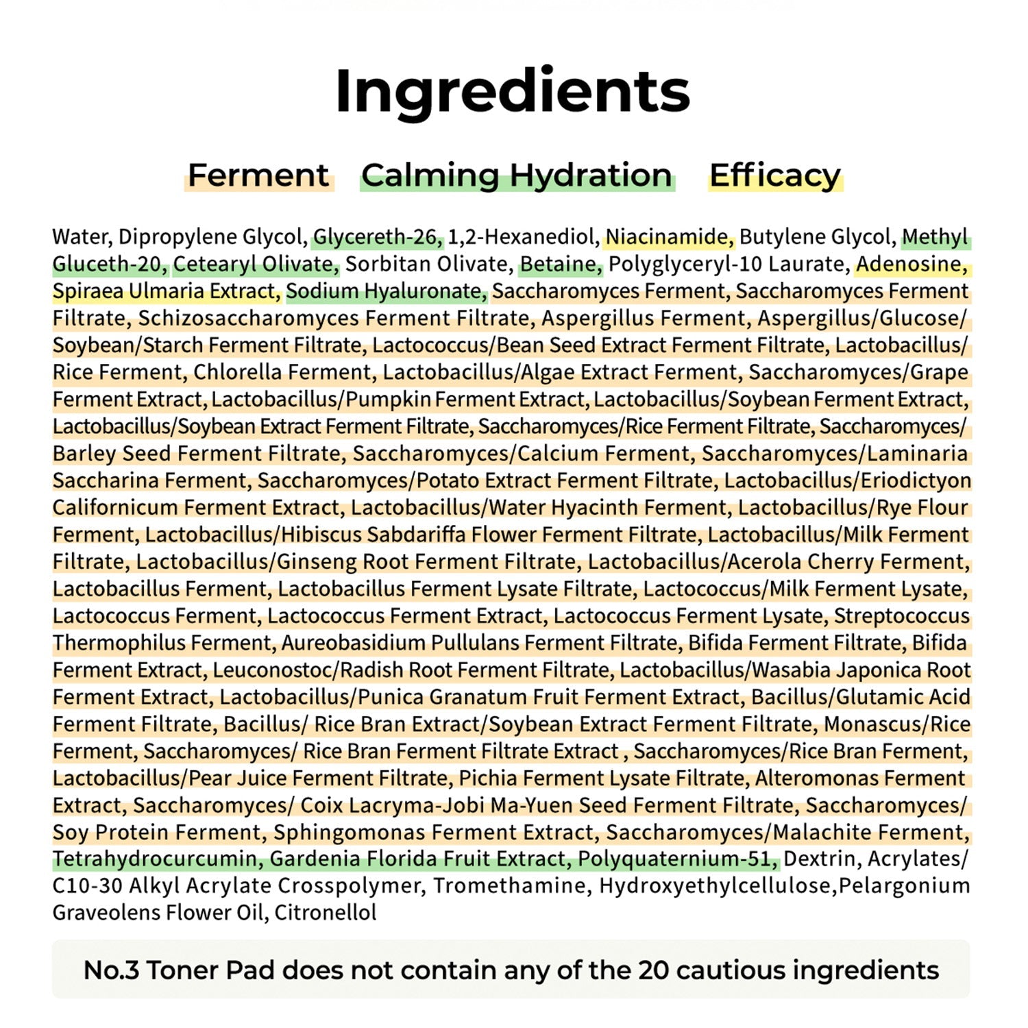A1: The pads contain 50 fermented ingredients that work synergistically to enhance skin transparency and radiance. These ingredients are clinically proven to improve skin brightness by 162.4% in just two weeks, promoting a clear and glowing complexion.