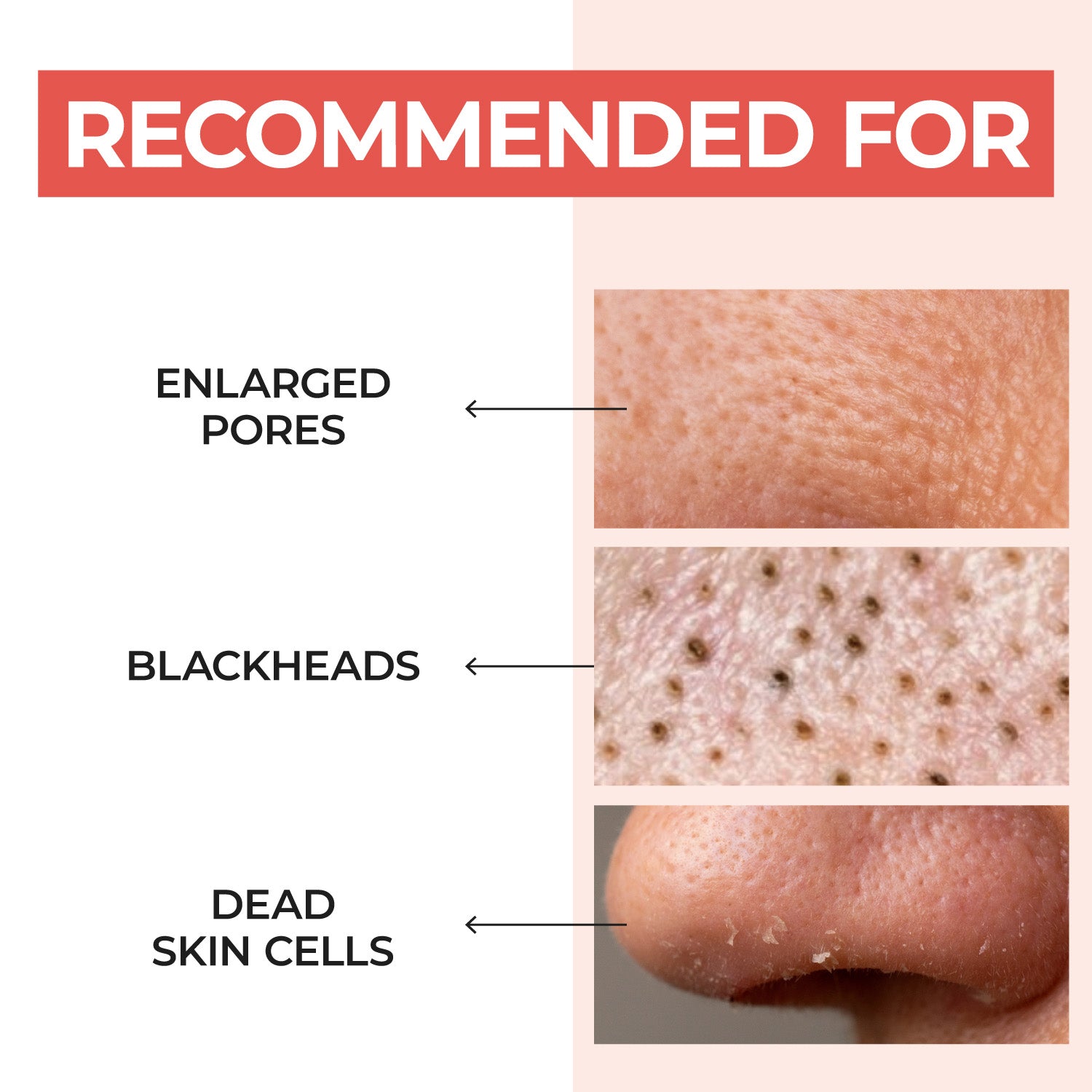 - Exfoliates dead skin cells and clears sebum for a clean finish