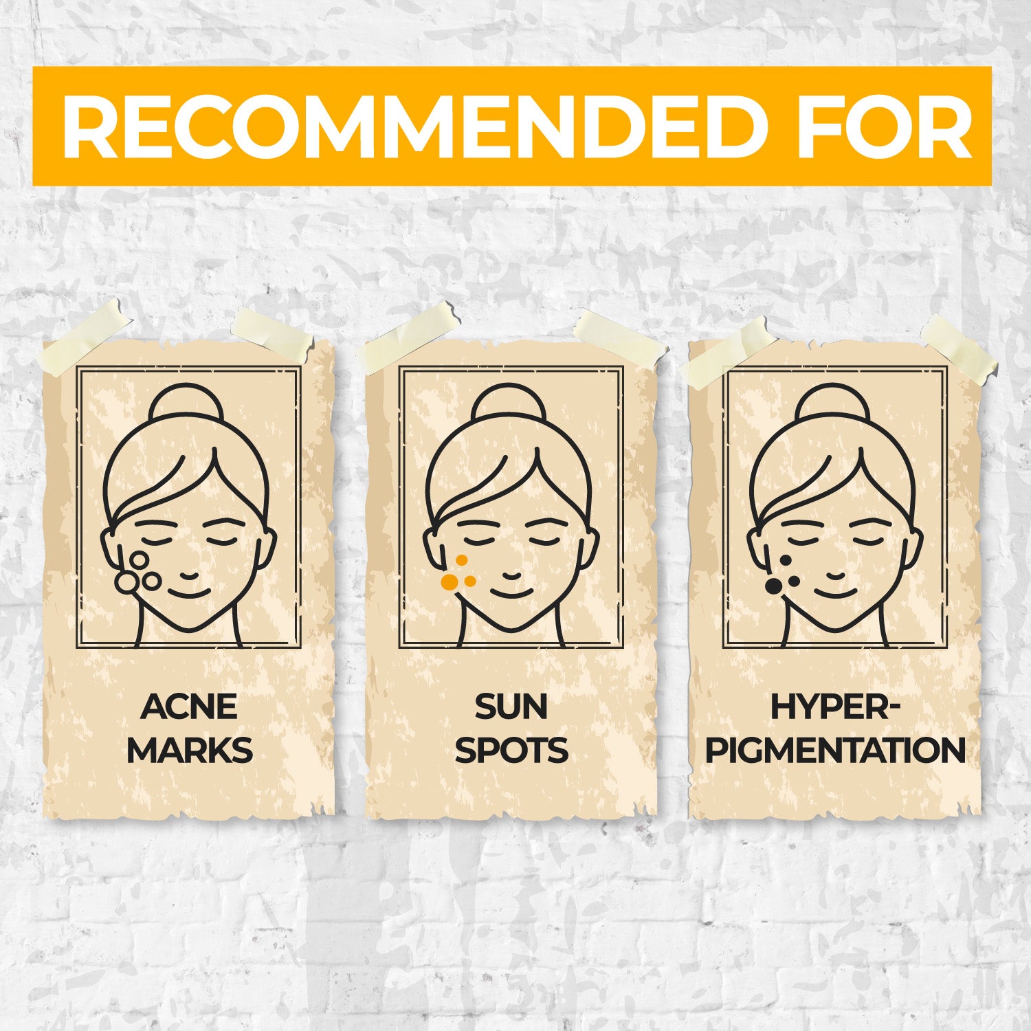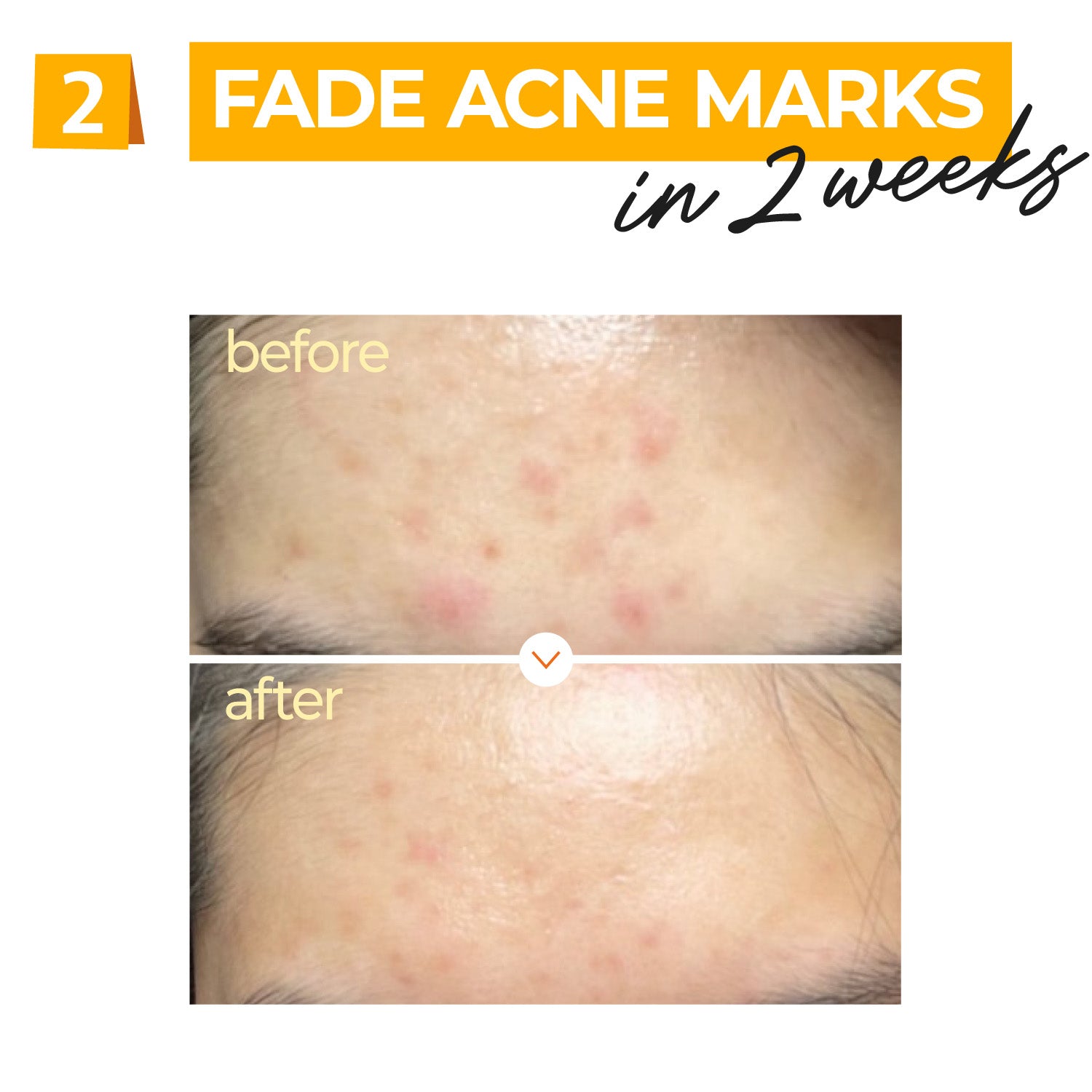 - Reduces acne marks and scarring, particularly from post-breakout pigmentation