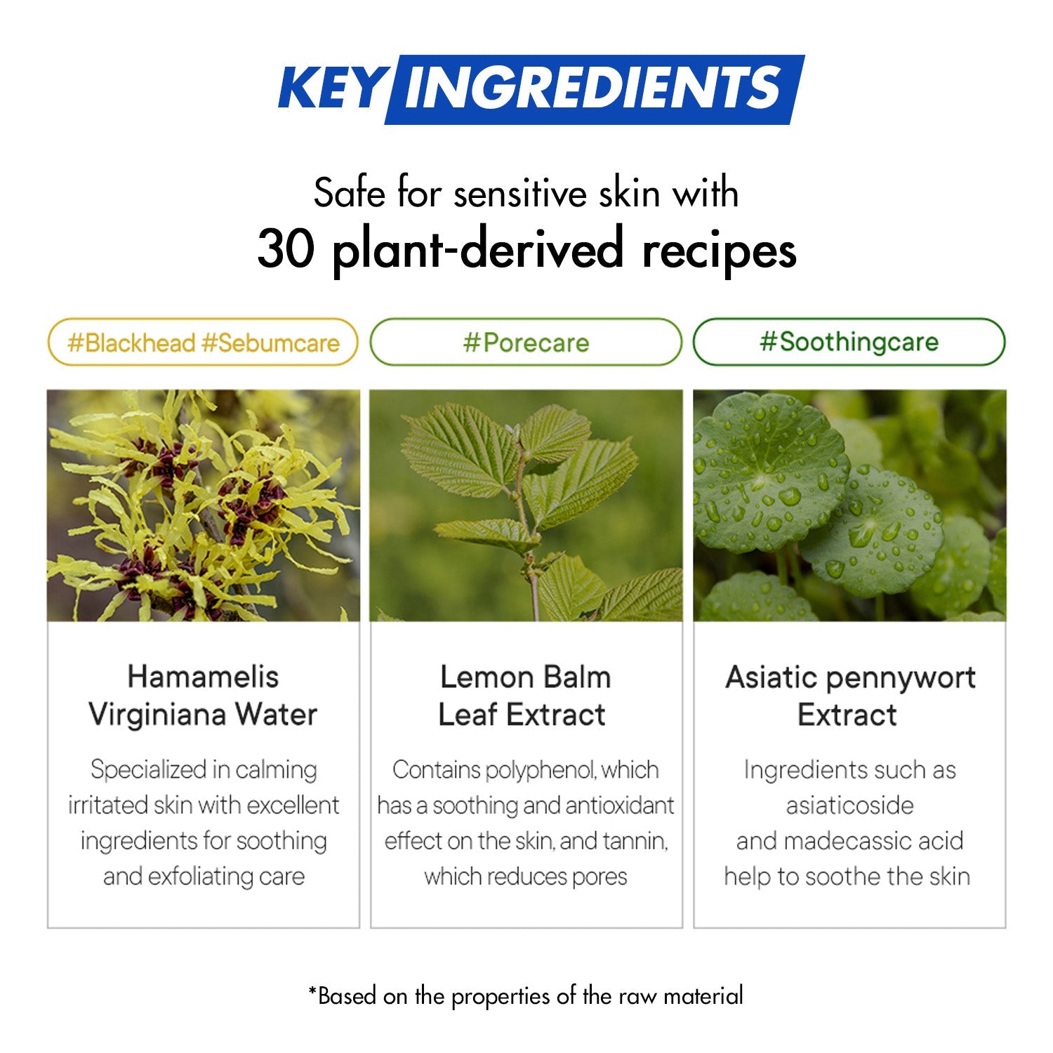 Water, Hamamelis Virginiana (Witch Hazel) Water, Butylene Glycol, Salvia Officinalis (Sage) Leaf Extract, Melissa Officinalis Leaf Extract, Arctium Majus Root Extract, Mentha Piperita (Peppermint) Leaf Extract, Juniperus Communis Fruit Extract, Viscum Album (Mistletoe) Extract, Saponaria Officinalis Root Extract, Hypericum Perforatum Extract, Cochlearia Armoracia (Horseradish) Root Extract, Lilium Candidum Flower Extract, Lavandula Angustifolia (Lavender) Flower Extract, Malus Domestica Fruit Extract, Rice Ferment Filtrate (Sake), Yeast Extract, Oryza Sativa (Rice) Bran Extract, Centella Asiatica Extract, Polygonum Cuspidatum Root Extract, Scutellaria Baicalensis Root Extract, Camellia Sinensis Leaf Extract, Glycyrrhiza Glabra (Licorice) Root Extract, Chamomilla Recutita (Matricaria) Flower Extract, Rosmarinus Officinalis (Rosemary) Leaf Extract, Lactobacillus/Soybean Ferment Extract, Salix Alba (Willow) Bark Extract, Cinnamomum Cassia Bark Extract, Origanum Vulgare Leaf Extract, Chamaecyparis Obtusa Leaf Extract, Portulaca Oleracea Extract, Illicium Verum (Anise) Fruit Extract, 1,2-Hexanediol, Caprylyl Glycol, Eucalyptus Globulus Leaf Oil, Sodium lauroyl glutamate, Polyglyceryl-10 Laurate, Polyglyceryl-10 Myristate, Disodium EDTA