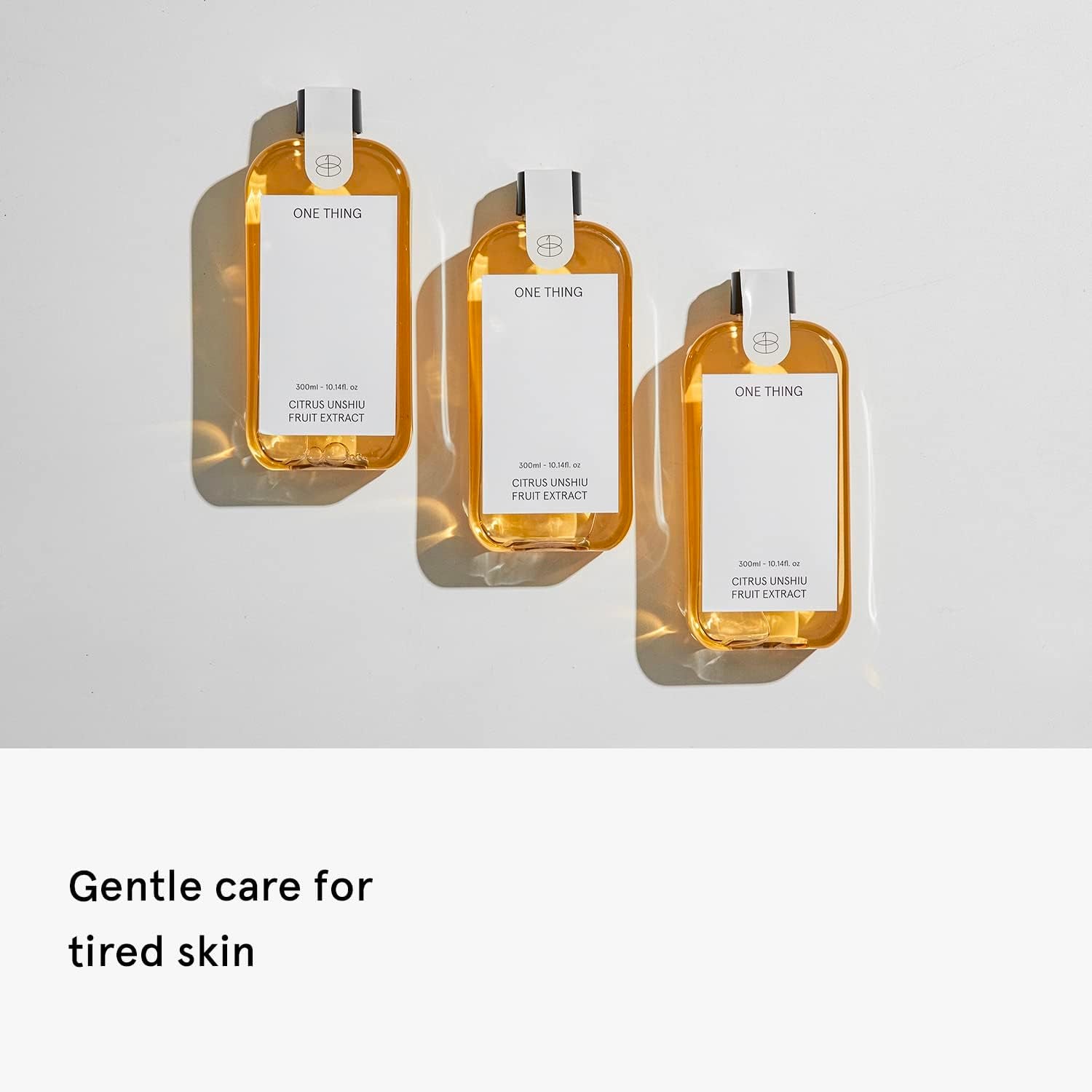 The ONE THING Citrus Unshiu Fruit Extract uses only the green tangerine that are harvested only between August-September in Jeju, South Korea. A 100% plant derived extract, it is a vegan product and is also cruelty free. It has a lightweight, watery texture, and uses 95% Citrus Unshiu Fruit Extract to brighten the skin. A gentle brightening ingredient, it can also be used by all skin types.
