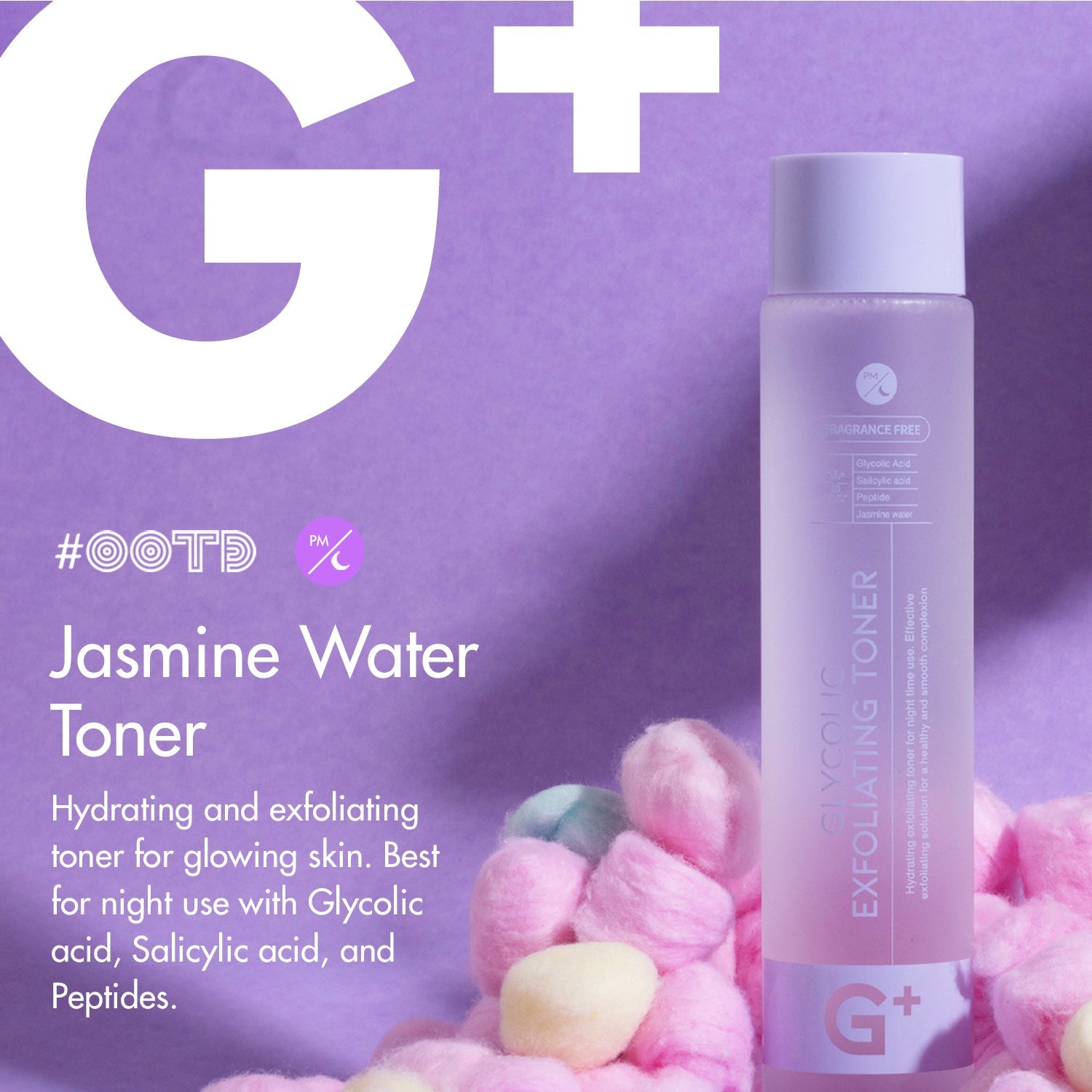 Wake up to glowing, radiant skin with the OOTD Glycolic Exfoliating Toner! This Korean toner is infused with Jasmine Water to nourish and soothe the skin as it exfoliates. It's gentle yet effective, and it's designed to be used at night to exfoliate and brighten your skin while you sleep. It's light weight watery texture is suitable for all skin types and absorbs instantly.