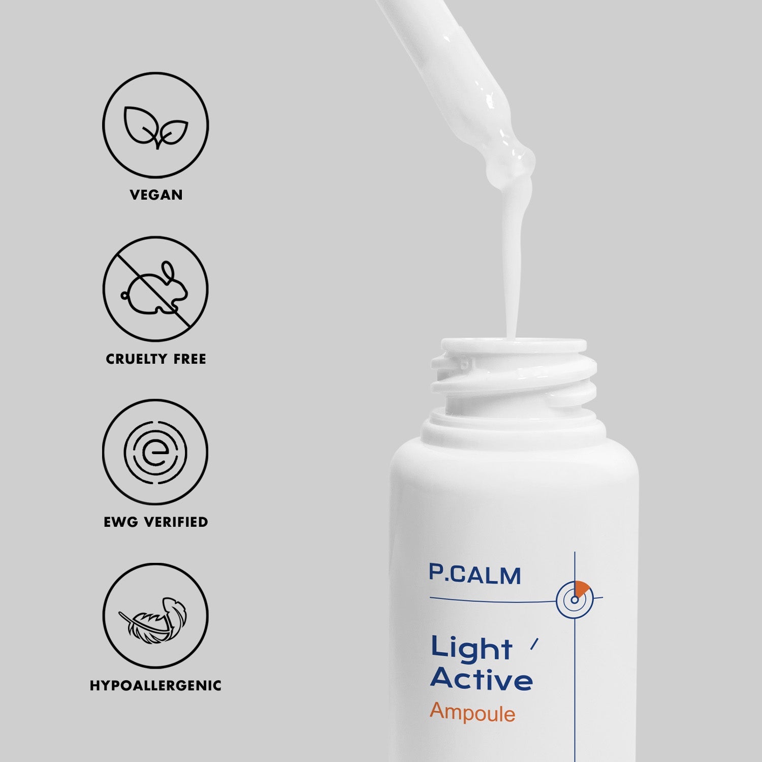 Discover the secret to radiant skin with the P.Calm Light Active Ampoule. It has a lightweight formula that absorbs easily, leaving your skin feeling fresh, plump and hydrated. This potent, milky, serum is also carefully formulated with a powerful combination of skin brightening ingredients, including star ingredient - 5% Niacinamide.