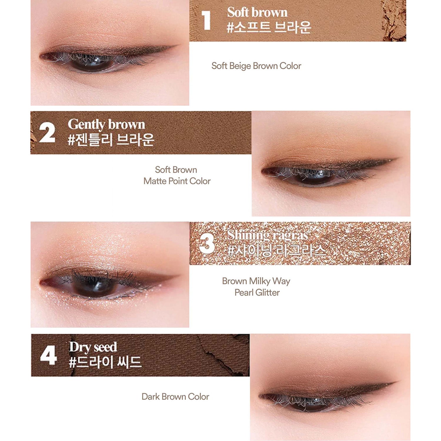 The Rom&nd Better Than Eyes eyeshadow palette is an easy to use 4-step eyeshadow quad. It has a buildable, non-creasing formula and pigmented shades perfect for everyday looks anywhere you go.
