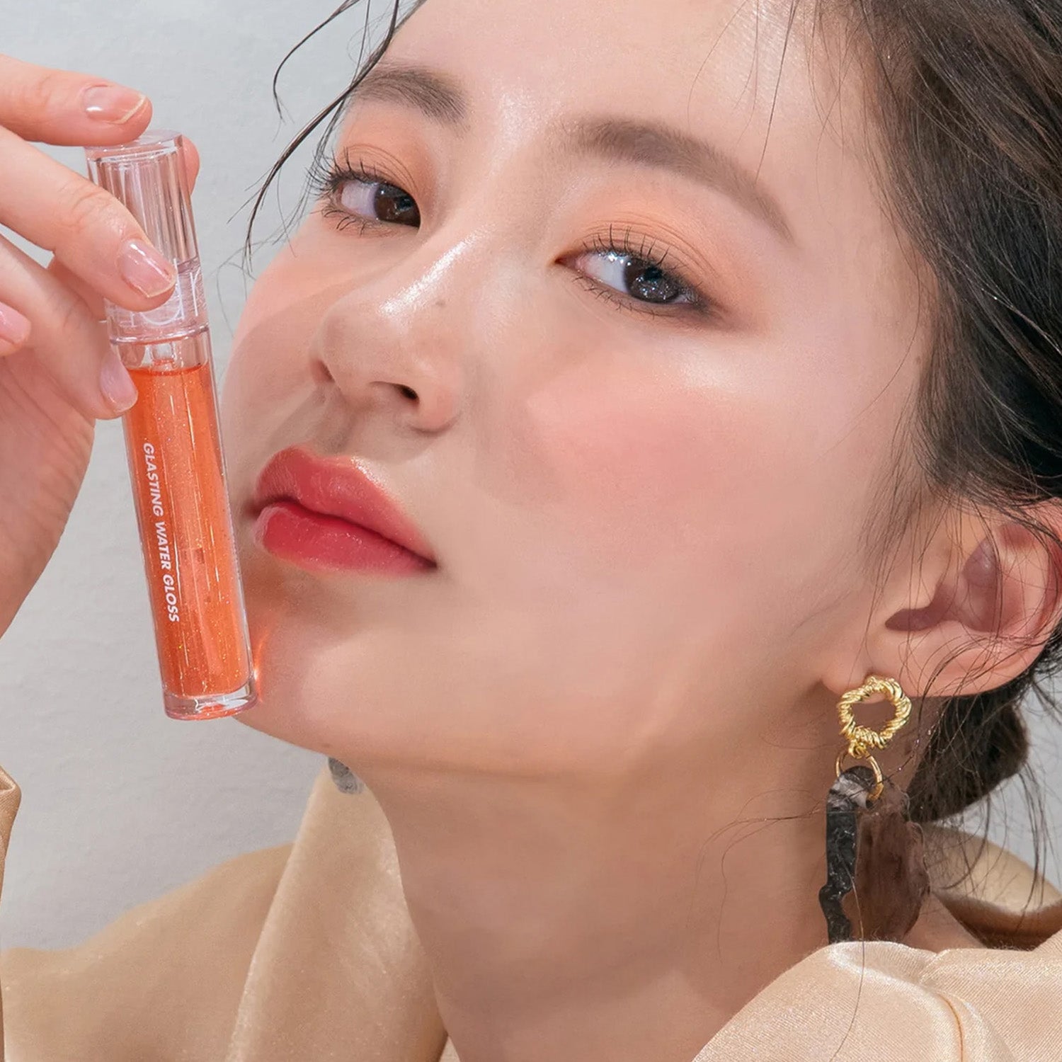 The Glasting Water Gloss creates glossy lips with a moderate amount of sparkling glitter in just one touch. The glitter particles are extremely fine and increase the reflectiveness of the gloss for a high-shine.