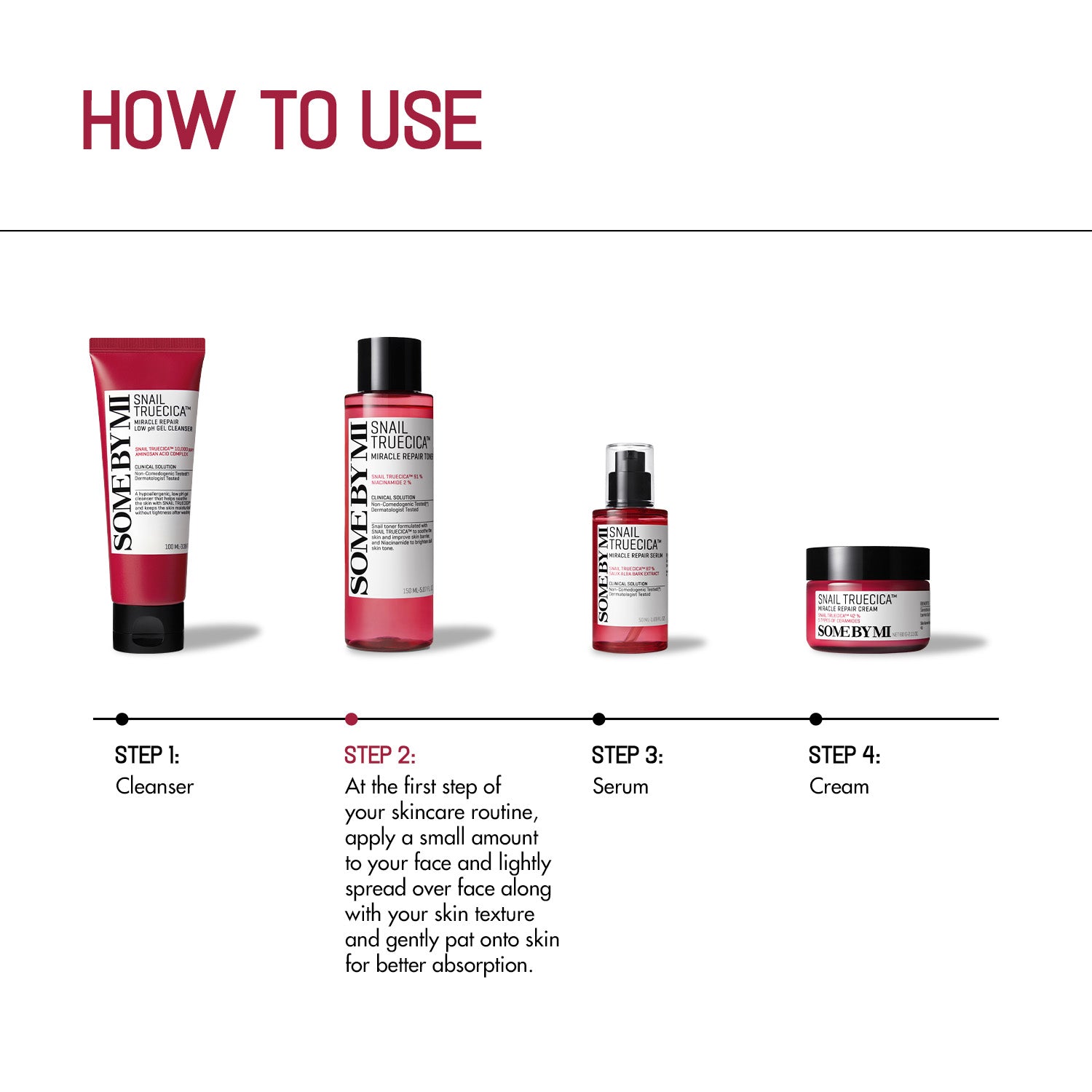 Truecica: SOME BY MI's soothing care and exclusive ingredient consists of Tea Tree, Centella Asiatica, Mugwort, and titrated extract of Centella Asiatica. This exclusive trademarked complex calms skin quickly.