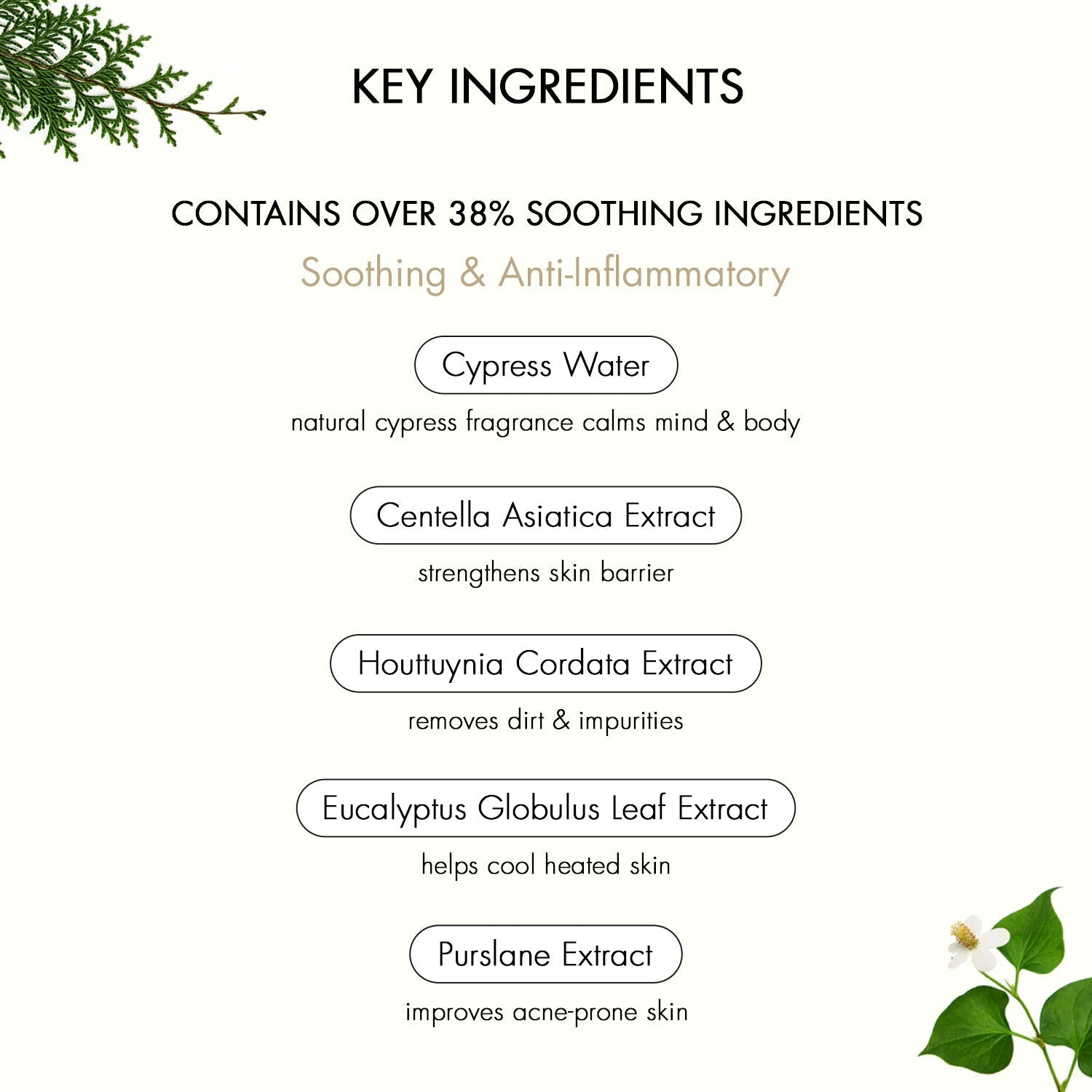 • Cypress Water: natural cypress fragrance calms mind & body and hydrates